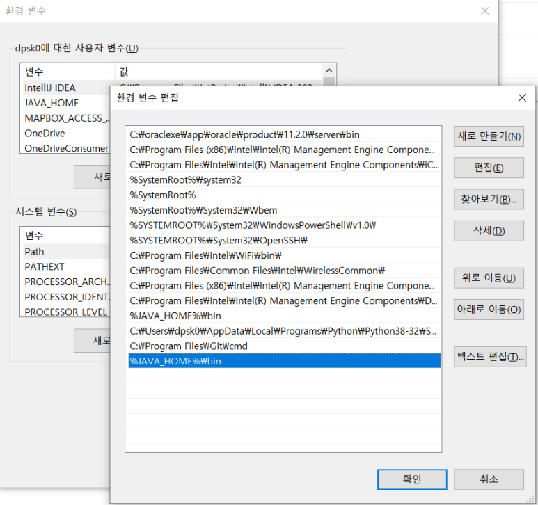 JAVA_HOME 변수 추가