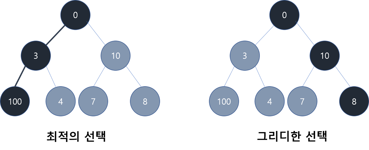 또한 그리디한 선택이 최적의 선택이 아니다.