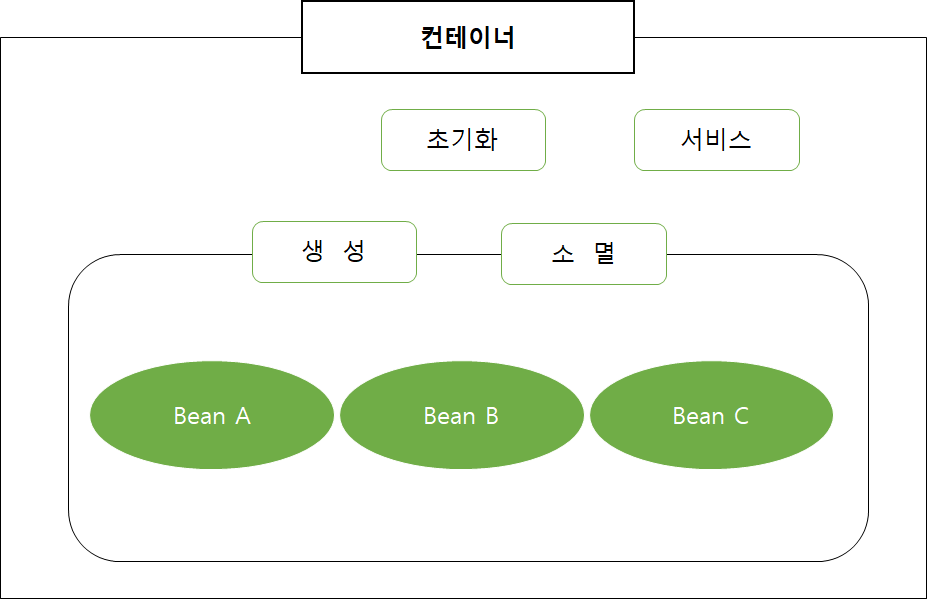 - 자바 객체(빈)의 생명 주기(생성, 초기화, 서비스, 소멸) 관리